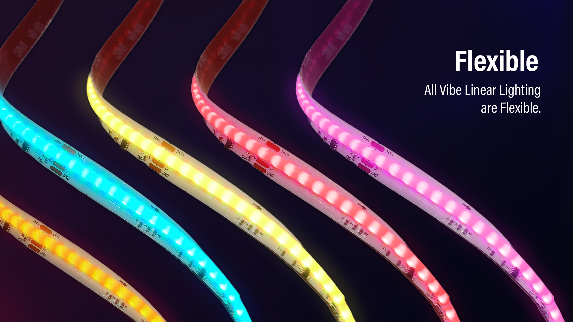 Vibe Pixel COB Linear Lighting - Choice of COB 784LPM RGB+3000K or COB 720LPM RGB individually addressable strips with zero-dot COB technology